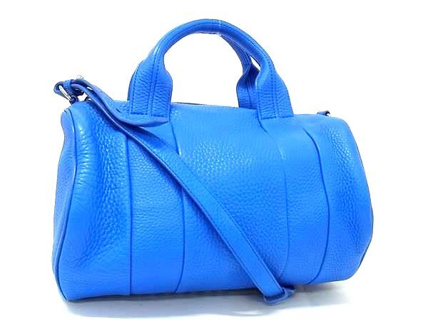 > 1円 ■美品■ Alexander Wang アレキサンダーワン レザー スタッズ 2WAY ミニボストン ハンドバッグ ショルダーバッグ ブルー系 FV3342