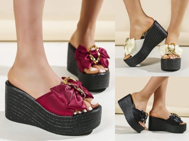 - 【高品質】全3色 ビーチサンダル ミュール 厚底 リボン付き sweet系 34 オフホワイト
