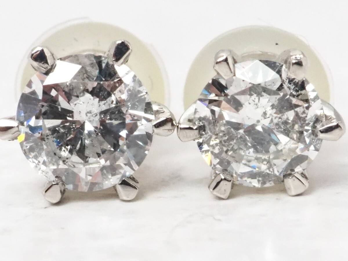 > 【8381J】Pt900/Pt850 天然ダイヤモンド 計0.962ct/0.539ct/0.423ct/1.6g ピアス