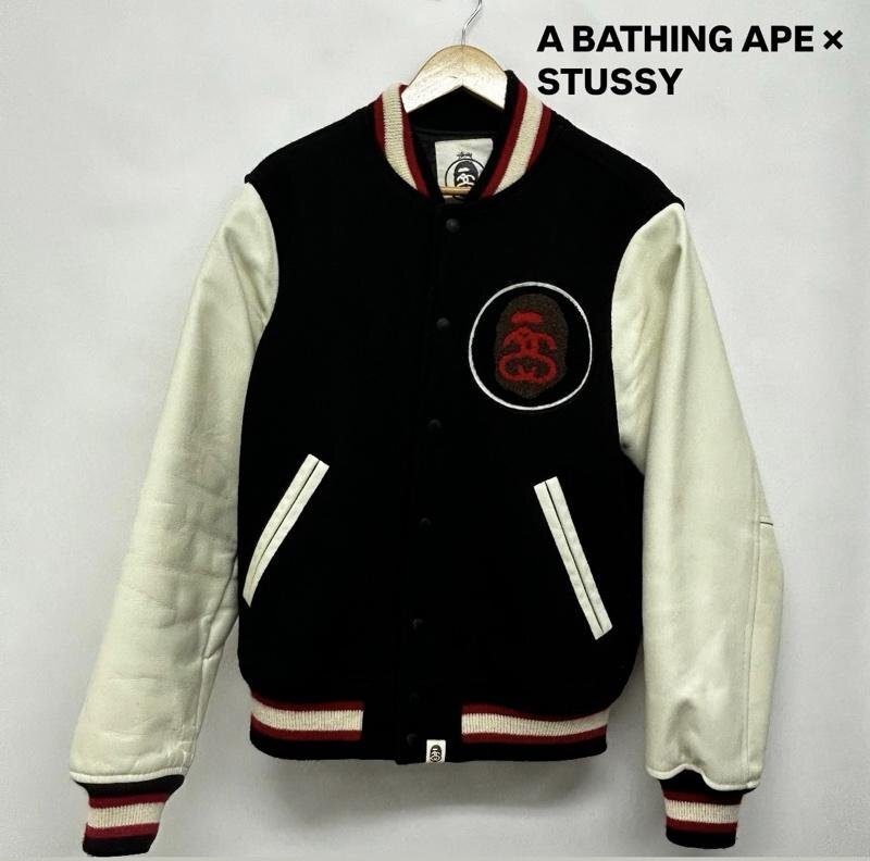 > アベイシングエイプ A BATHING APE x STUSSY スタジアムジャケット 刺繍ワッペン M