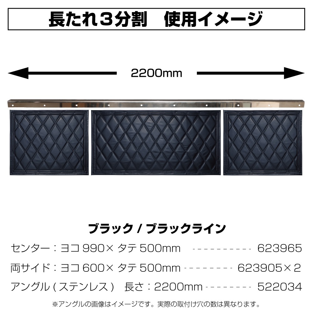- ジェットイノウエ製 泥除け[テント生地]Wステッチ ステンレス製 アングル付 長たれ3分割 2200×500 黒/黒ライン