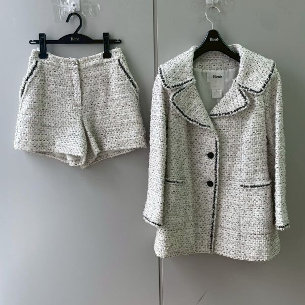 - H727-O15-8592 Rene ルネ TISSUE セットアップ 34サイズ 6413100/6415020 ジャケット ショートパンツ 日本製 レディース ハンガー付き OA