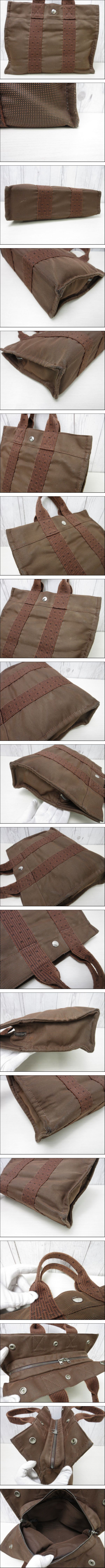 > 美品 HERMES エルメス エールラインPM ハンドバッグ トートバッグ バッグ キャンバス 茶 90458
