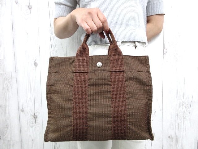 - 美品 HERMES エルメス エールラインPM ハンドバッグ トートバッグ バッグ キャンバス 茶 90458