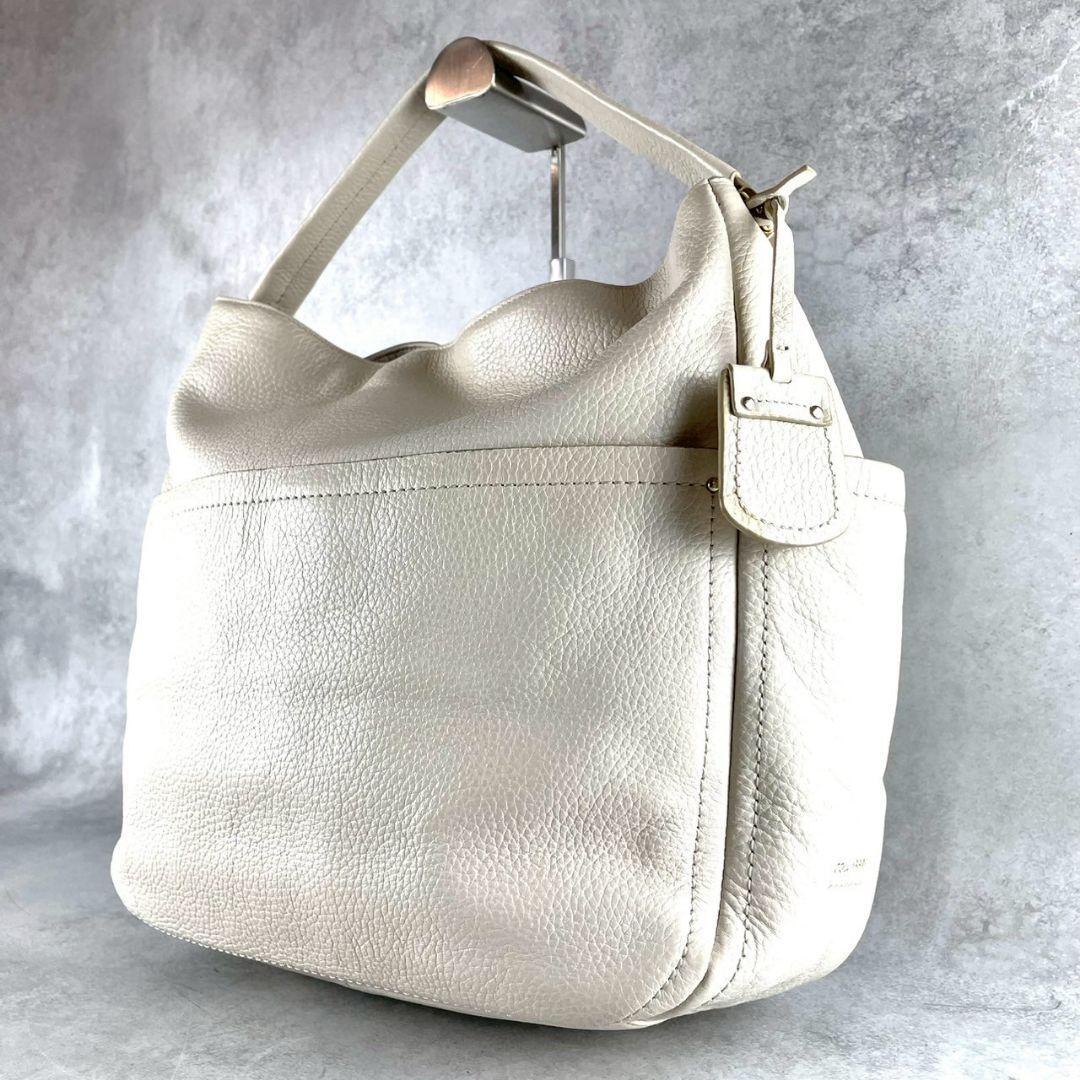 - 672 コールハーン ホワイト アイボリー レザー ショルダーバッグ シボ革