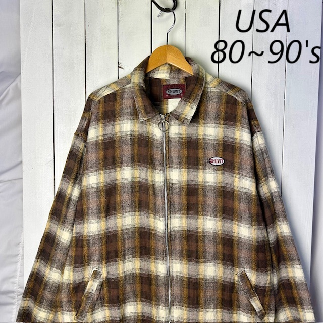 > USA古着 ~90s USA製 SHUVIT オンブレチェック ジップネルシャツジャケット XL~ ヴィンテージ オールド アメリカ古着 ライトアウター●307