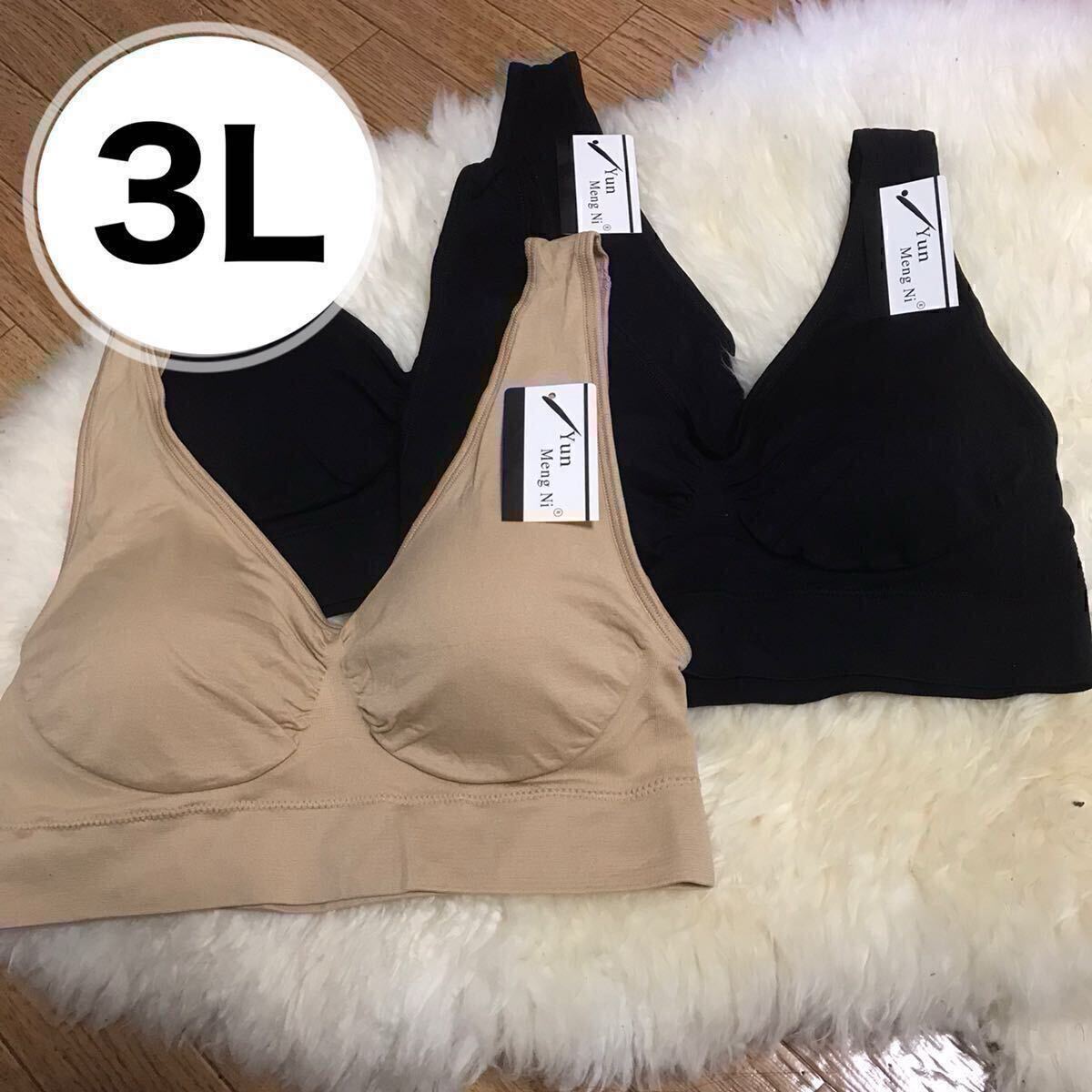 > ノンワイヤー ブラジャー 3枚セット 3L ブラック 黒 ベージュ 肌色 ナイトブラ スポーツブラ 授乳ブラ E80 F80 C85 D85 E85 F85 C90 XXL