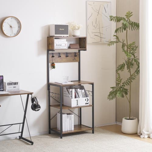 - 収納棚 収納ラック 収納 ユニットシェルフ オープンラック ラック 棚 スチールラック スリム キッチン 本棚 食器棚 【ブラウン】