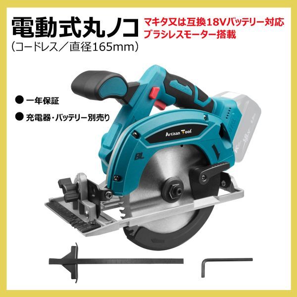 - 丸ノコ 電動 ATCS01B コードレス 電動のこぎり 165mm ブラシレスモーター搭載 マキタ18Vバッテリー対応 *1年保証