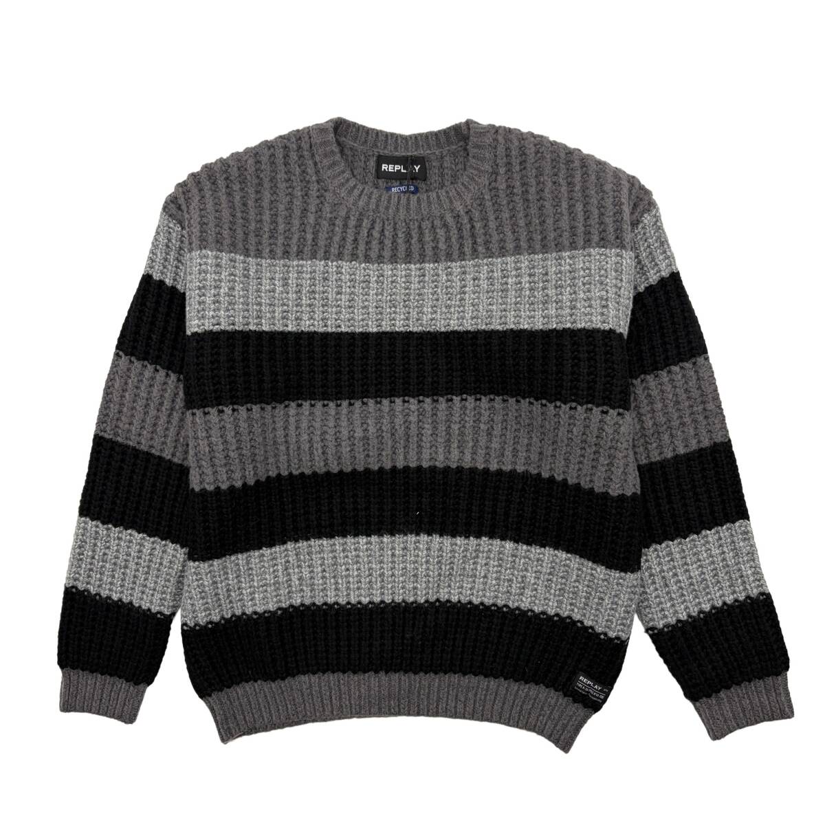 - 【サイズ選択】新品■定価37800円■REPLAY■ワイドピッチのボーダー柄ニットセーター■中厚ニット■リプレイ■グレー系