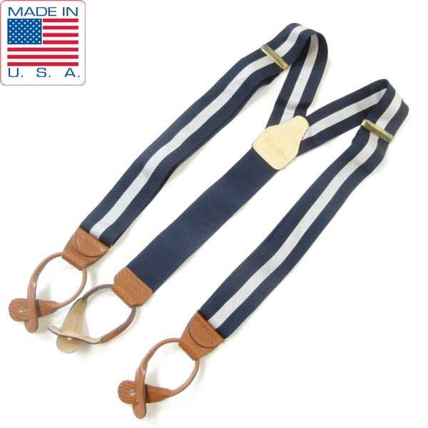 - 新品 USA製 ブルックスブラザーズ ボタンタブ式 Y型 サスペンダー 紺系 アメリカ製 ブレイシーズ ビジネス デッドストック D152-52-0006Z