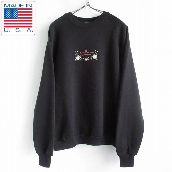 - 80s 美品 USA製 JERZEES 刺繍入り スウェット 黒 L トレーナー ジャージーズ アメリカ製 コットンポリ ビンテージ d144-13-0006ZVW