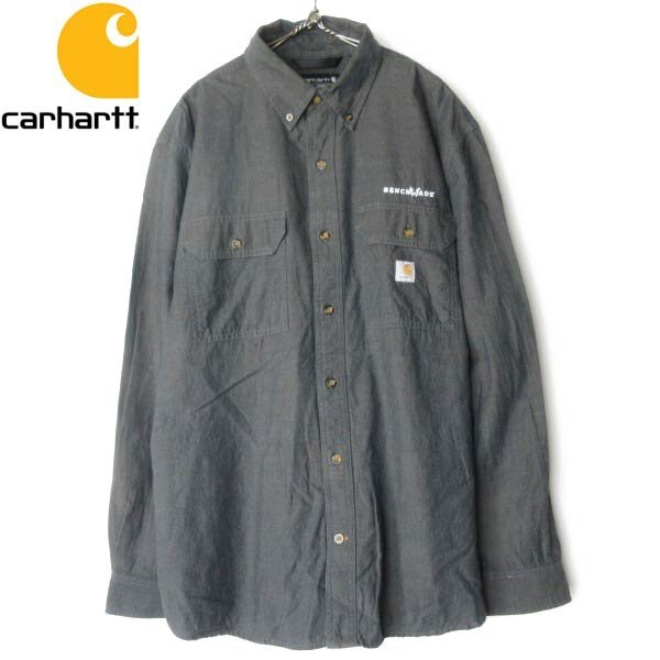 > 極美品 carhartt カーハート 長袖 シャンブレー BD シャツ L 黒系 ブラック 104368 BKC D152-14-0009ZV