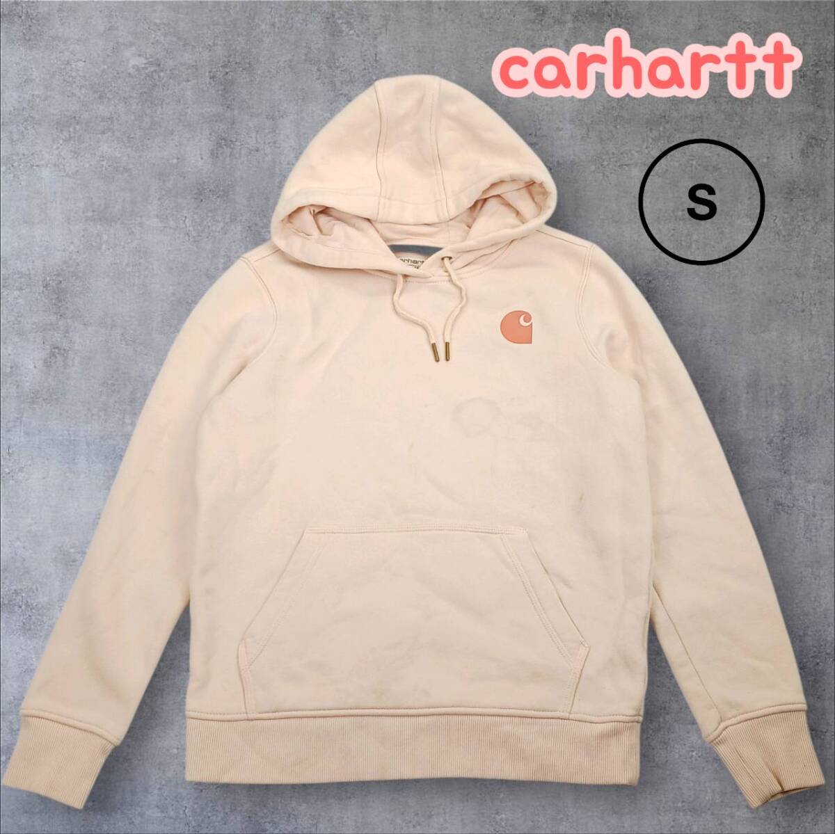 > S(4/6) carhartt パーカー 裏起毛 ベージュ マフポケット 長袖 ユニセックス着用可 pa0668