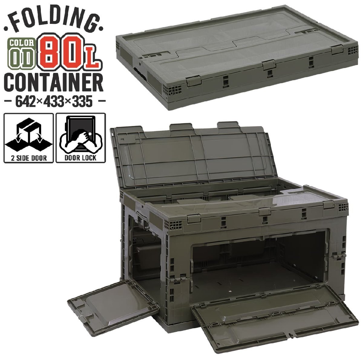 - FDC0009O ミリタリーベース 折り畳みコンテナ 80L 中窓2箇所付(長辺1短辺1) 折りたたみコンテナ