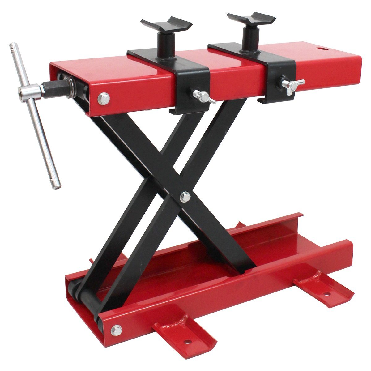 - 【新品即納】バイク ジャッキ 耐荷重 500kg バイクリフト メンテナンス スタンド モーターサイクルジャッキ アダプター付き 修理 整備 赤