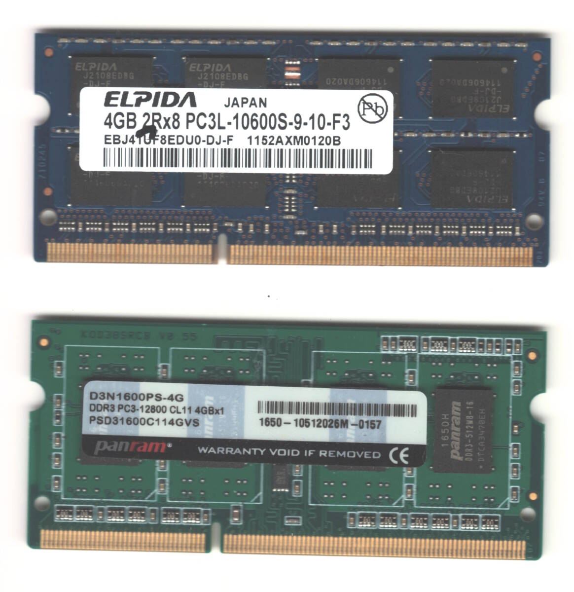 - PC3-10600/12800 8GB分 4GB×2枚 ノートパソコン用メモリ DDR3L-1600【送料込み】動作確認済み