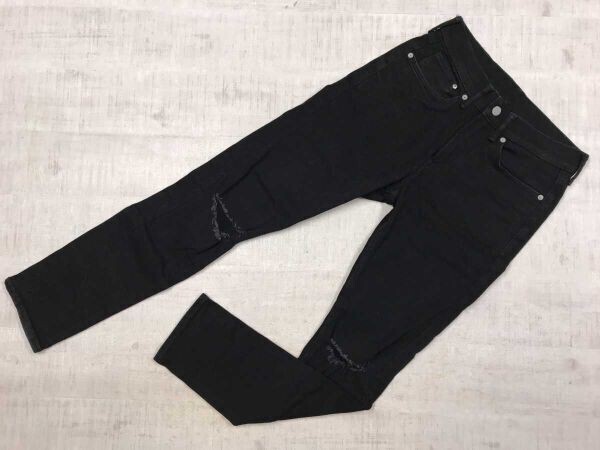 > エイチアンドエム H&M &DENIM ストリート グランジ 紙パッチ 膝 ダメージ加工 テーパード ブラック デニム パンツ ジーンズ メンズ 30 黒