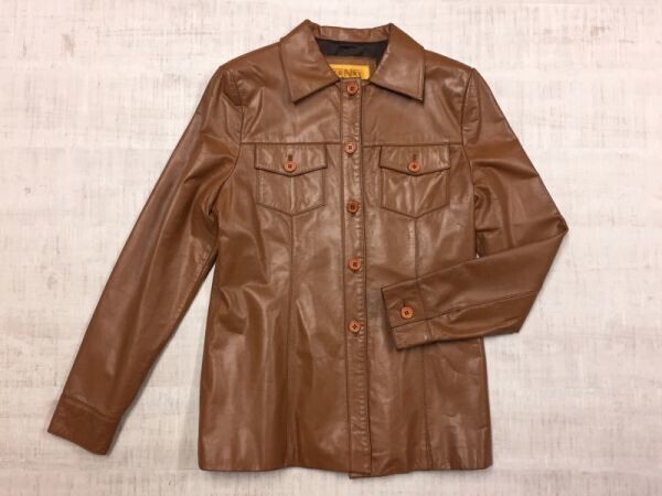 > ELENXY フェイクレザー 合皮 シャツ ジャケット レディース フラップポケット 5ボタン 韓国古着 ポリウレタン100% 77 茶色