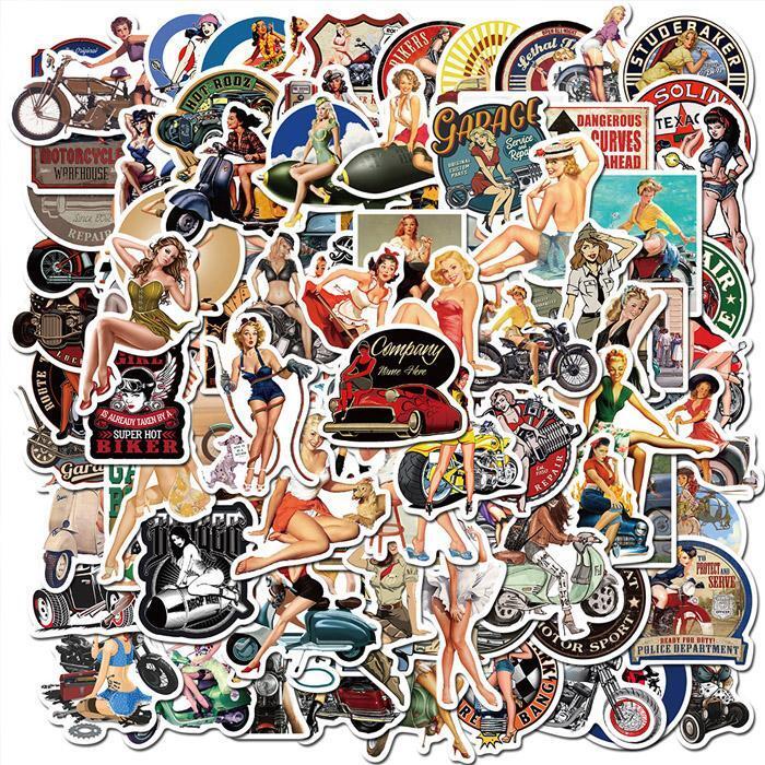 - 100枚 ステッカー レトロセクシー ガール オートバイ 防水 シール 1129