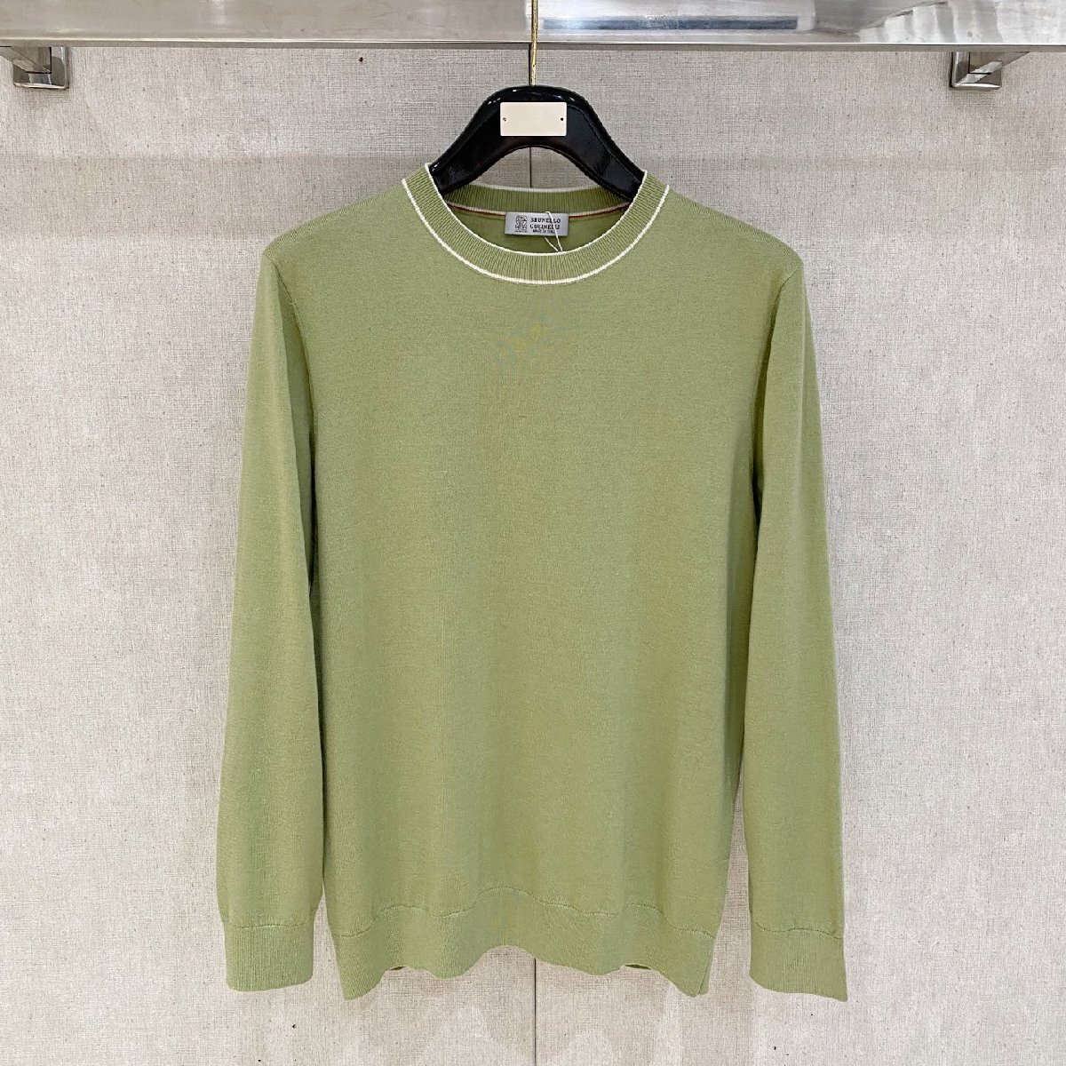 - グリーンピースXL★送料無料★ブルネロクチネリ★メンズカシミヤ混クルーネック セーター,ホワイトライン,ビジネスカジュアル,長袖