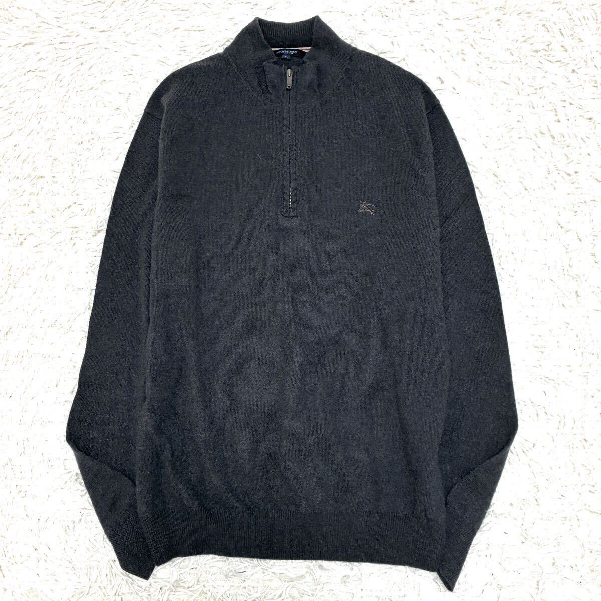 - 1円 極美品 Lサイズ!BURBERRY バーバリー ドライバーズニット セーター メンズ ホースロゴ ハーフジップ ウール カシミヤ ダークグレー
