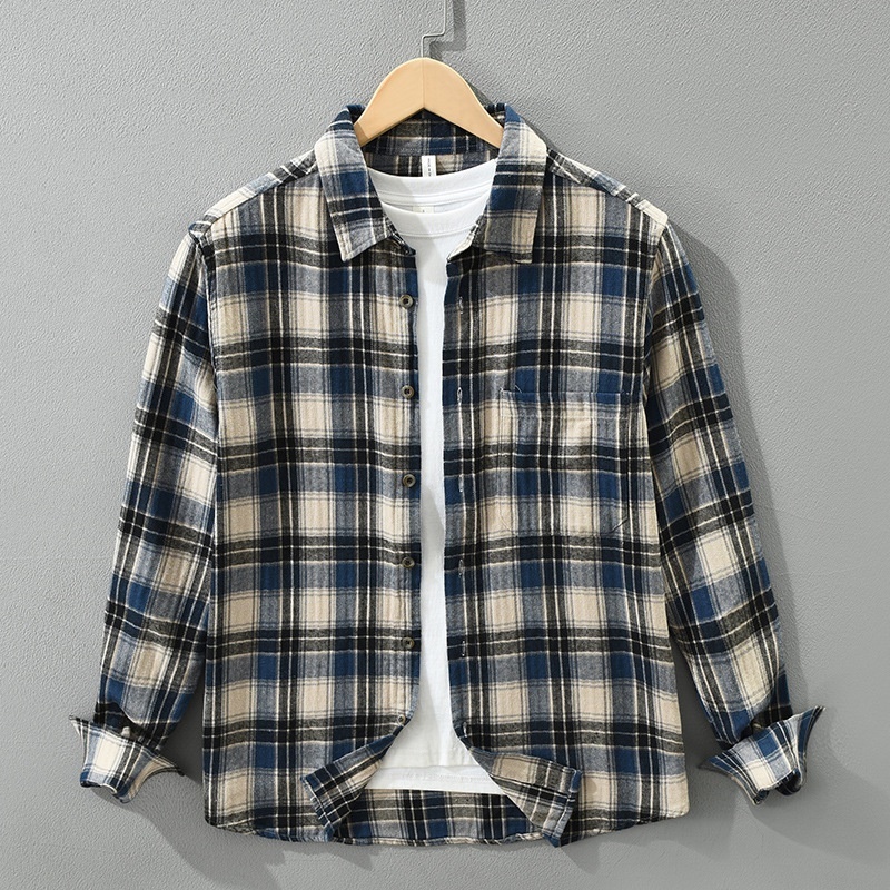 > ネルシャツ チェックシャツ メンズ★新品 長袖シャツ トップス カジュアルシャツ 春服秋服 コットンシャツ【M7796】ブルー L