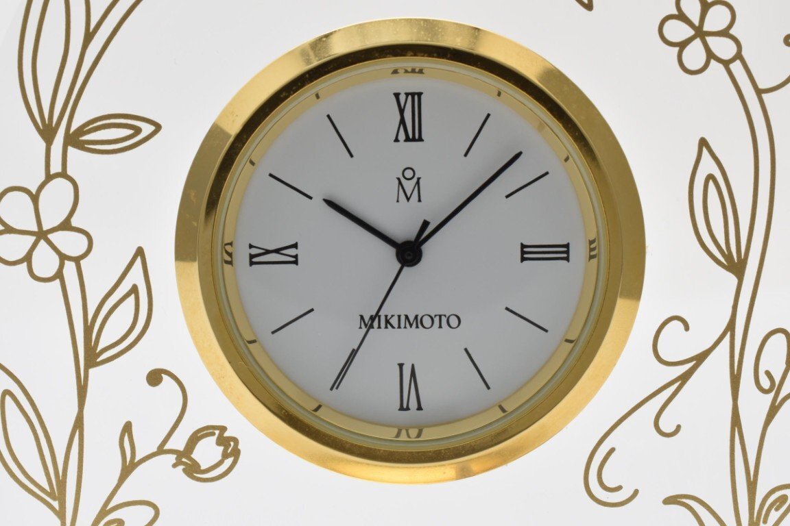> ミキモト パール付き 高級 置時計 アーチ形 クロック 卓上時計 ゴールド ホワイト 真珠 PEARL 3針 QUARTZ MIKIMOTO