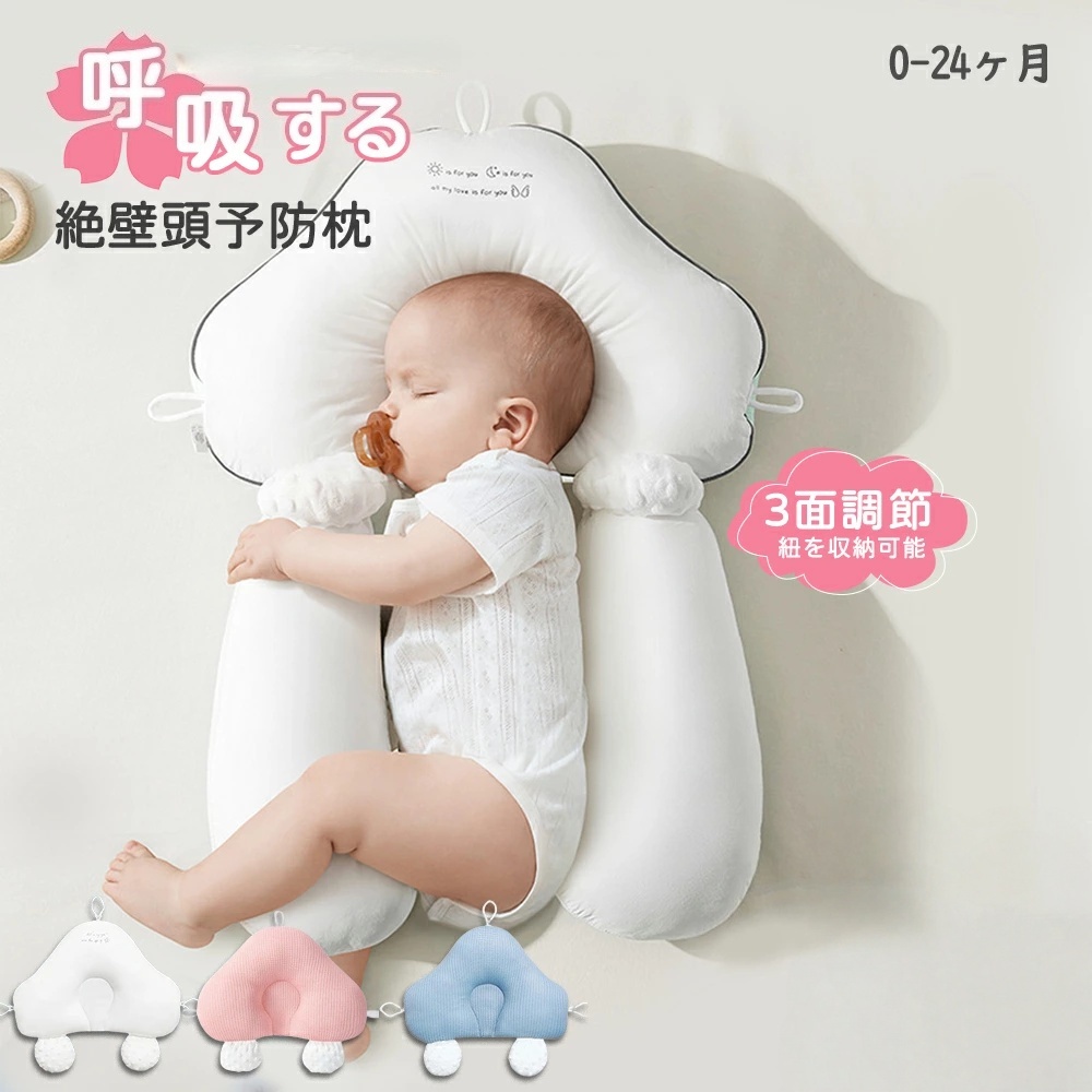 - ベビー枕 新生児から使える 絶壁防止 赤ちゃん 三面調節 丸洗い 吐き戻し防止 0ヶ月 向き癖防止枕 頭の形 高さ調節 子供 まくら 出産準備