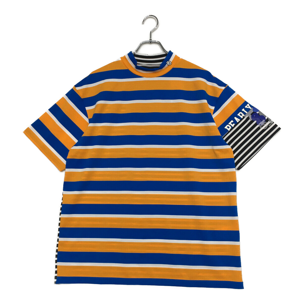 > coco 中古 パーリーゲイツ PEARLY GATES メンズ 半袖シャツ 6(LL) 青×オレンジ×白×黒 モックネック ボーダー ネコポス発送可 103860