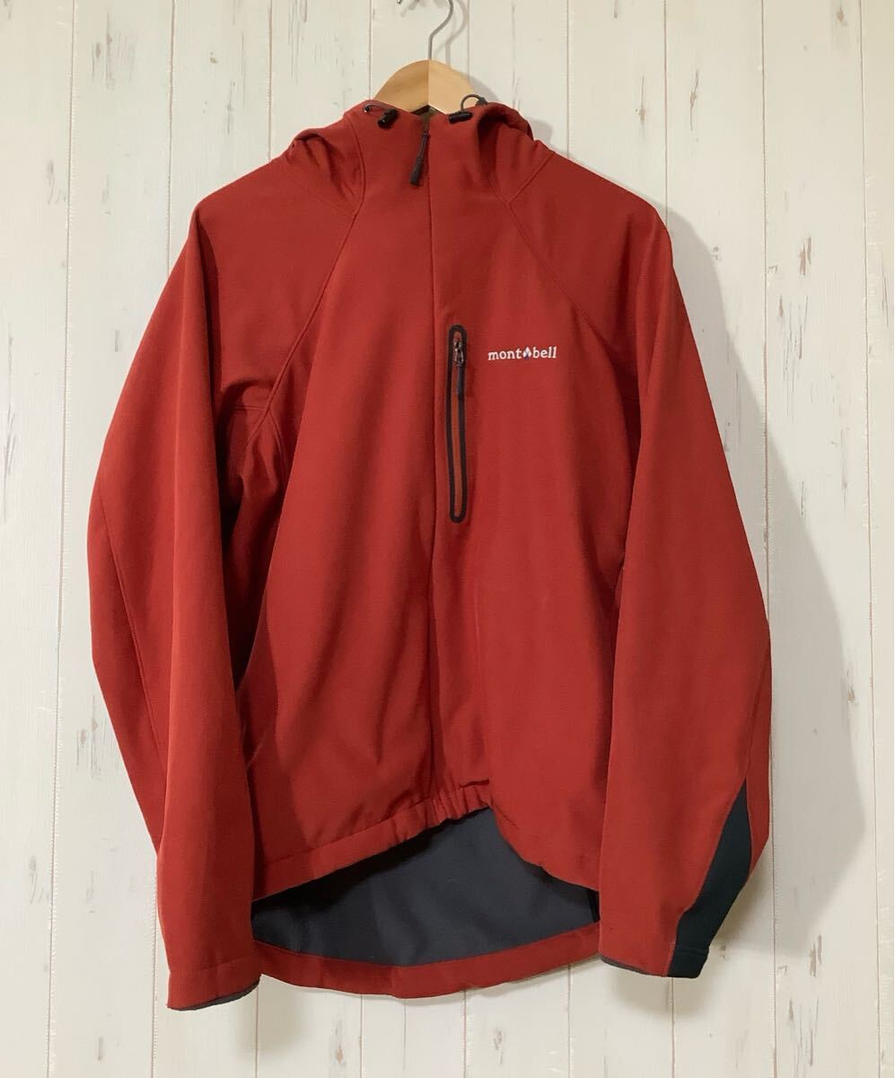> た1764 mont-bell モンベル 1106451 ノマドパーカ マウンテンパーカー M ダークオレンジ ロゴ刺繍 裏起毛 CLIMAPRO