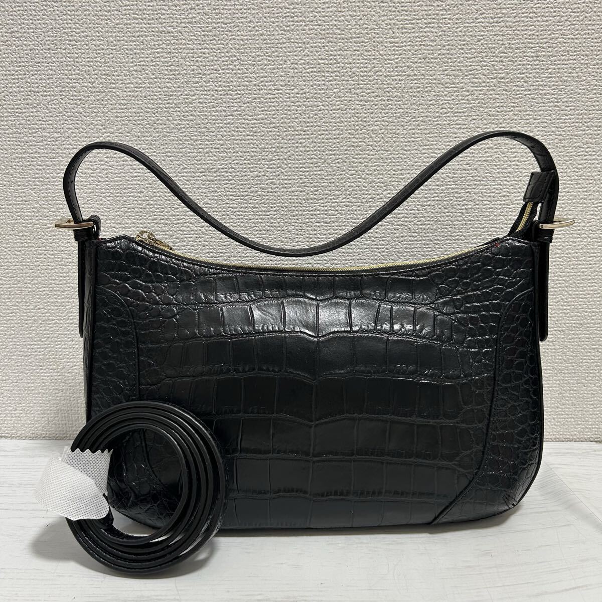 - 極美品 cat in the closet レディース 2way ショルダーバッグ ハンドバッグ クロコ型押し ワニ柄 黒色 ブラック 本革 レザー 高級 ブランド