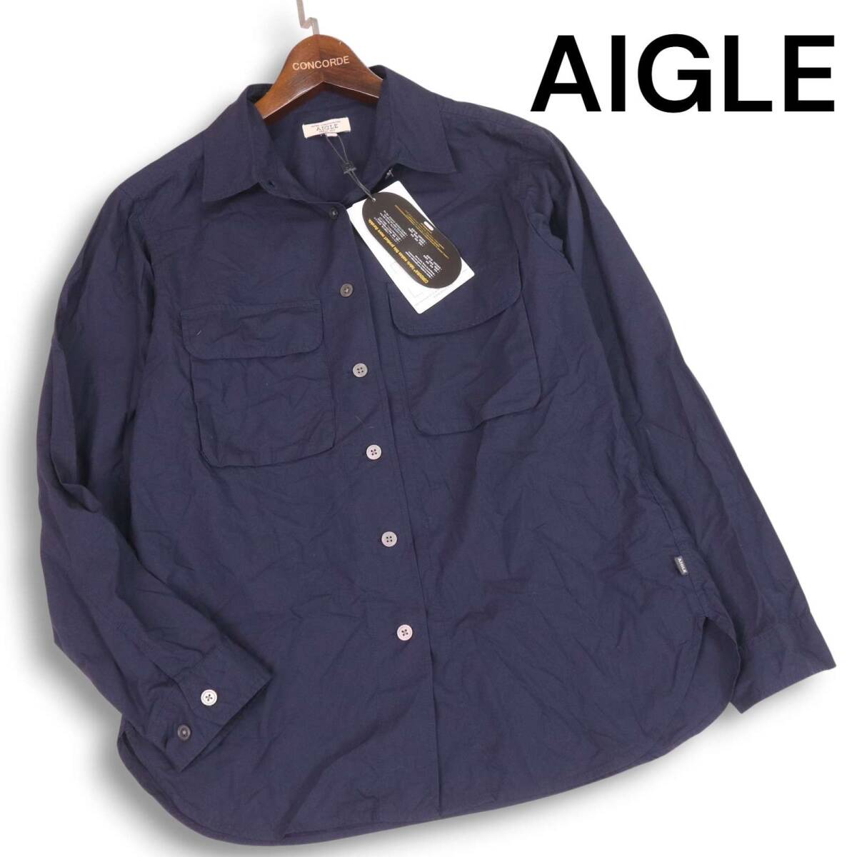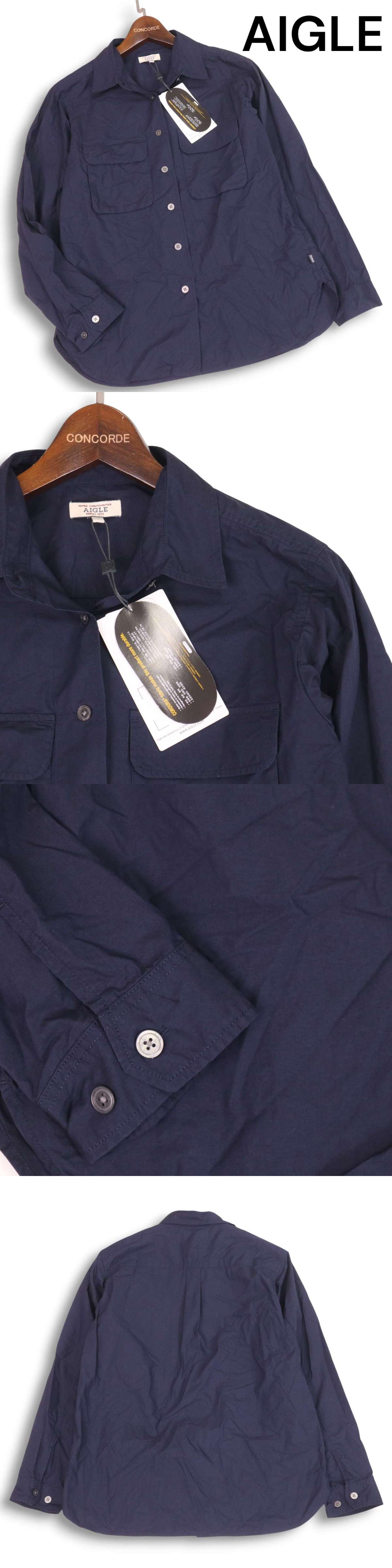 - 【新品 未使用】 AIGLE エーグル 通年★ 高強度 コーデュラ ミリタリー 長袖 シャツ Sz.38 レディース ネイビー アウトドア