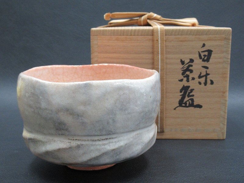 D3270 小川裕起夫 三代 小川長楽 白楽 茶碗 抹茶碗 茶器 茶道具 共箱