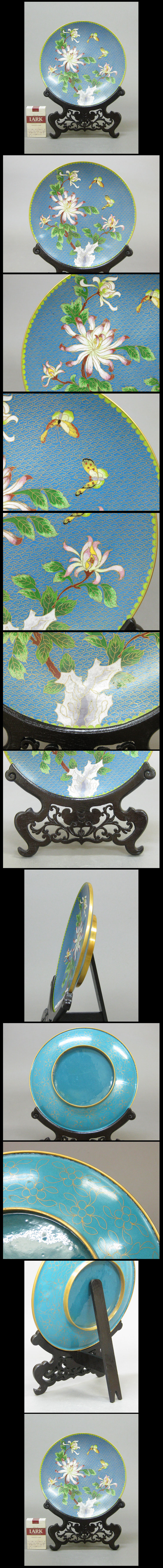 - 【心庵】中国 銅胎七宝 花蝶文/皿 直径25.7cm 台付 B472