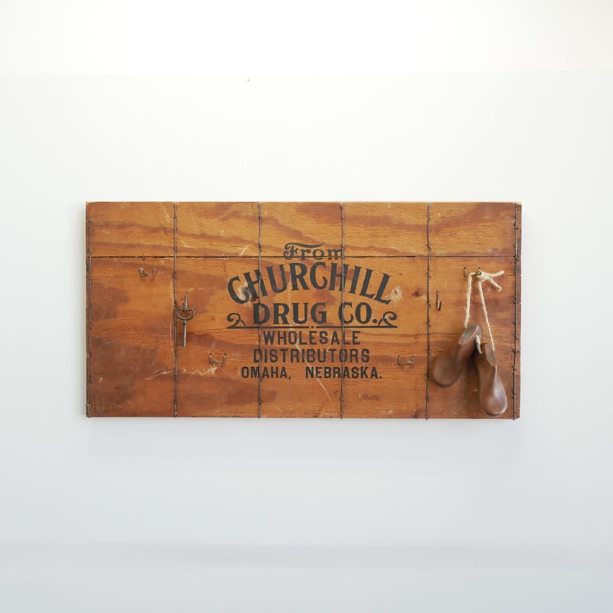 - アンティークボード 壁掛けフック CHUR CHILL DRUG CO. /アメリカ 製薬会社 木箱 ジャンクスタイル 店舗什器 ディスプレイ #602-15-183-553