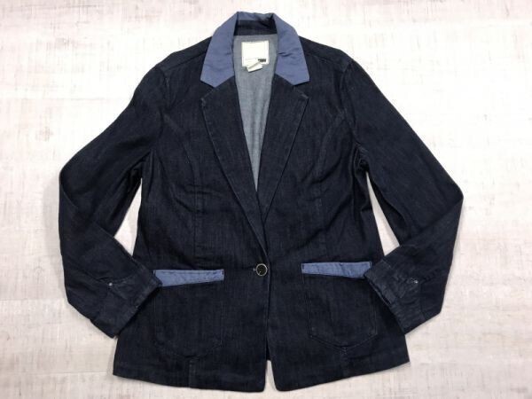 - リーバイス Levi's アメカジ ヘリテージ 古着 差し色 ブルー 切替 ワーク デニム×シャンブレー テーラード ジャケット レディース S 紺