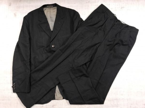 - YOUN COUNTRY STYLE トラッド タック入り スラックス ストライプ 背抜き シングル スーツ 上下セットアップ メンズ ウール100% S5 グレー