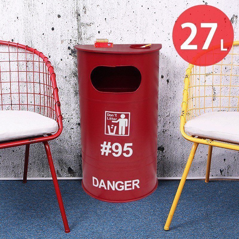 - 【BZ-14】アメリカンレトロ ドラム缶型 半円 ゴミ箱 ダストボックス ダストビン 27l インテリア アメリカン雑貨 ブリキ ヴィンテージ