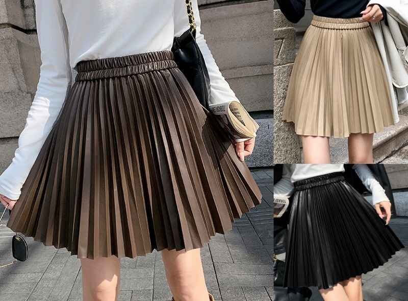 - ミニスカート フリル プリーツスカート かわいい ボトムス カジュアル シンプル 秋冬 L ブラウン