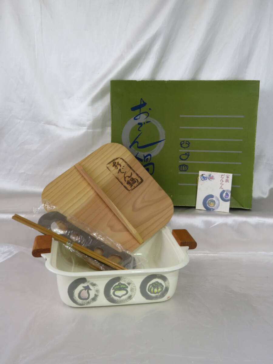 > 【調理器具】 25cm角型 おでん鍋 やさい柄 角おでん 箸 仕切り ほうろう鍋 25cm 5.0 冬到来 家族団らん 保管現状品