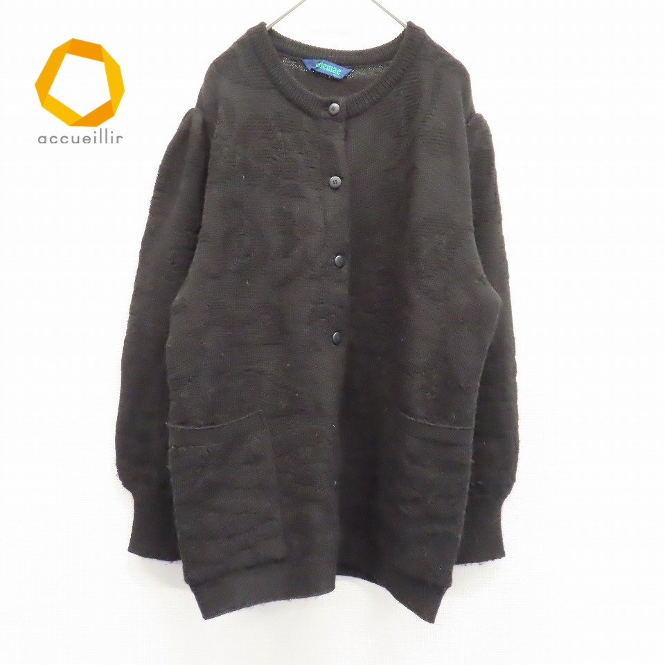 【ブランド】micmac ミックマック【アイテム】ニット カーディガン 【表記サイズ】-【平置き実寸】トップス肩幅:約 42cm袖丈:約 62cm身幅:約 51cm着丈:約 65cm【状態】目立った傷汚れなし【備考】-【色】黒系 ブラック系【素材】画像をご参照ください。★当店の商品はすべてリユースアイテムとなります。特質上、些細なダメージは記載しておりませんので着用に問題のない使用感、着古した雰囲気などはご了承くださいませ。キーワード/アクイール/古着/used/ビンテージ/ヴィンテージ/昭和/レトロ/レナウン/PARIS/セーター