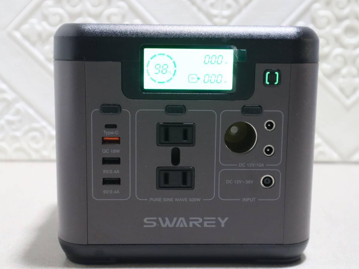 - A0676 P SWAREY S500 ポータブル電源 518Wh 500W 大容量 蓄電池 AC/DC/USB/Type-C 急速充電 純正弦波 ソーラー充電 防災 車中泊 本体のみ