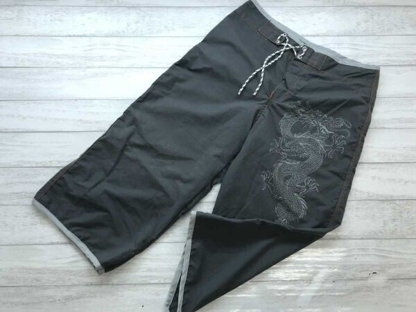 - サーフアクション SURF ACTION オリエンタル ストリート 龍 ドラゴン 海パン スイム ボード ショーツ ハーフ ショート パンツ グレー