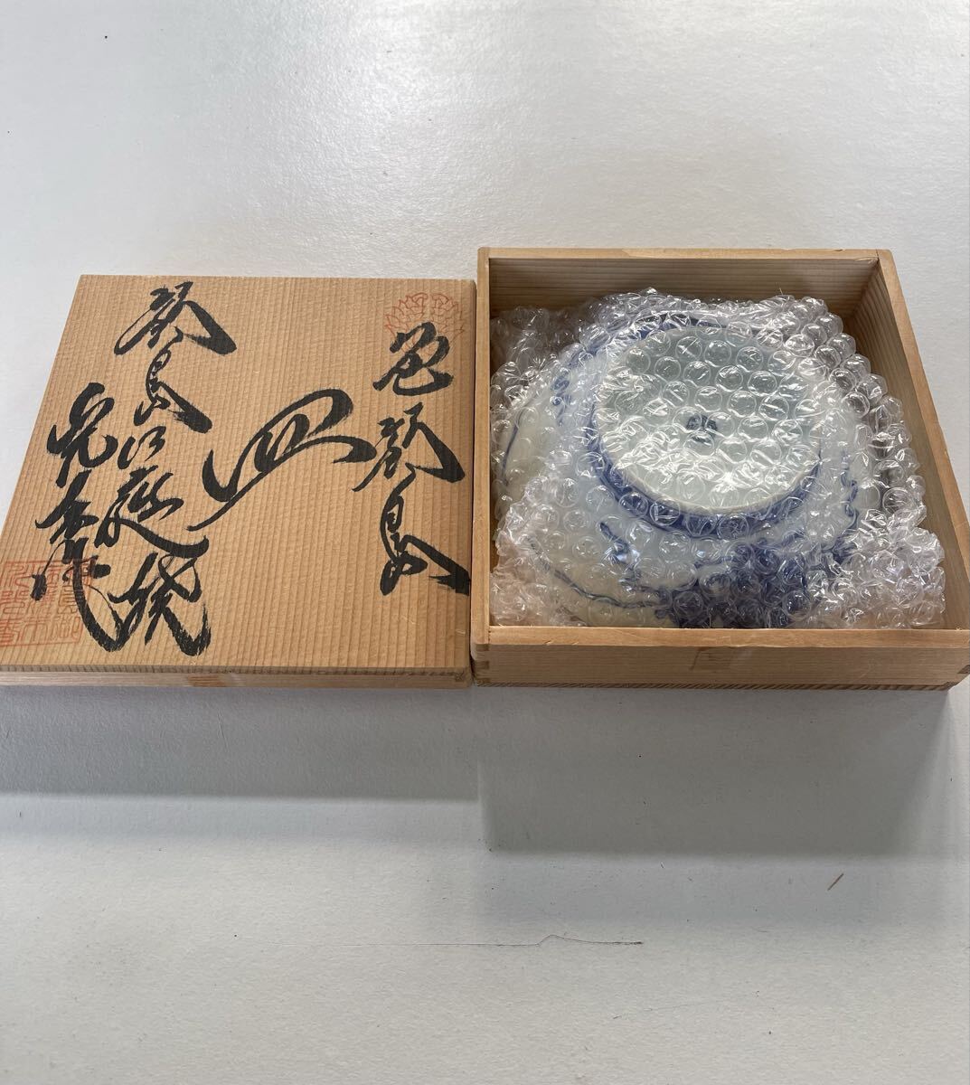 - 鍋島御庭焼 市川光春 色鍋島 桜散桃文高台鉢 高台皿 共箱
