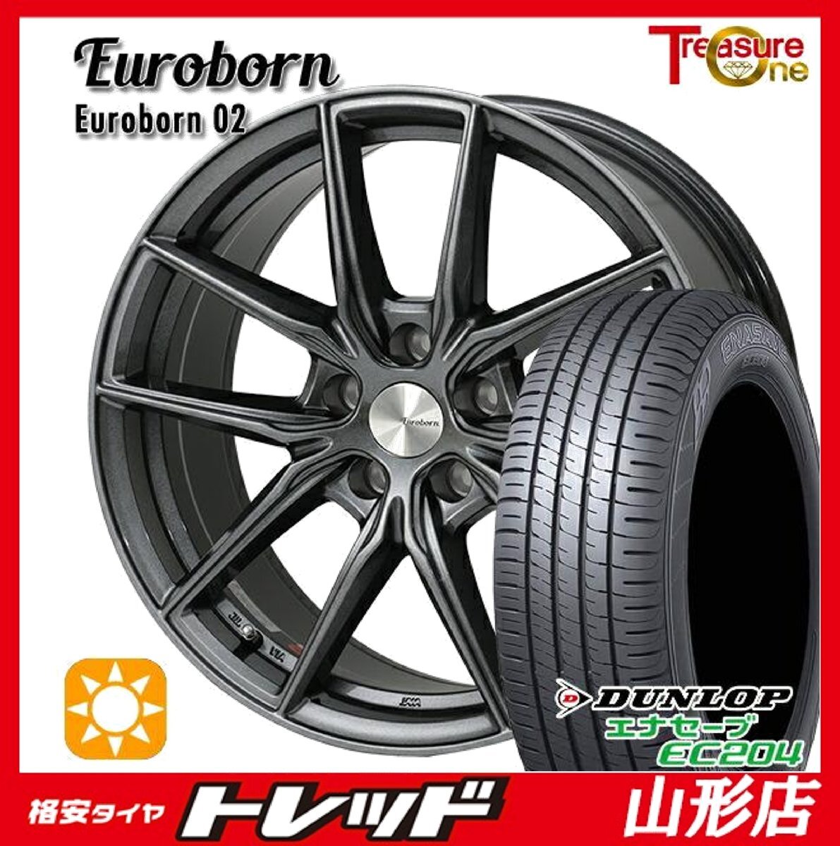 - 山形店 新品 アウトレット 冬タイヤ ホイールセット ユーロボーン02 17インチ 7.5j 5H112 +52 GMBK DUNLOP EC204 225/55R17 2024年製 BMW