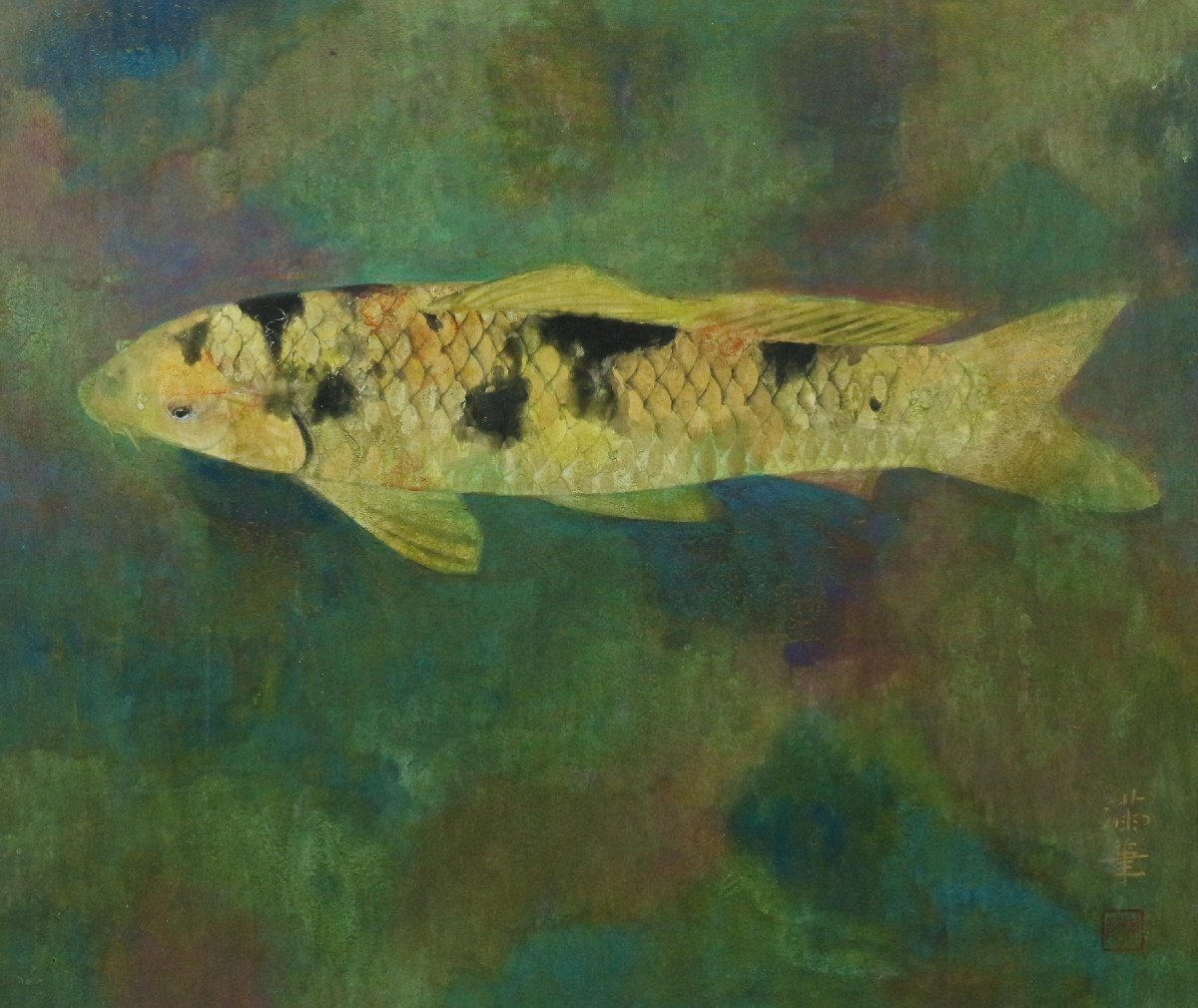 | ・松浦満「錦鯉」12号相当 日本画 額装品 /岩彩画 静物画 動物画 170 |