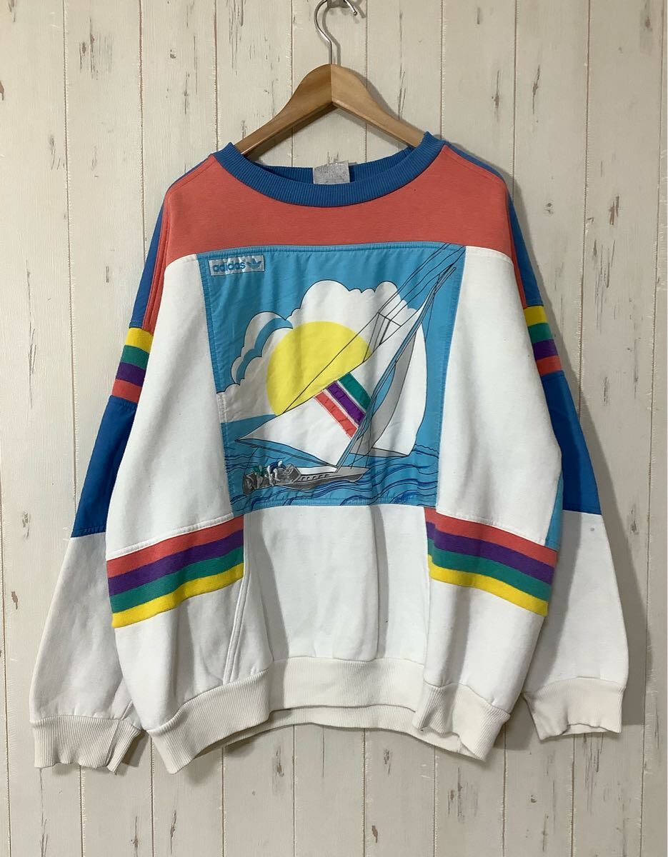 > ち1733 adidas アディダス スウェットトレーナー XL 裏起毛 ホワイト/ライトブルー/ピンク ヨット REGATTA ADIDAS