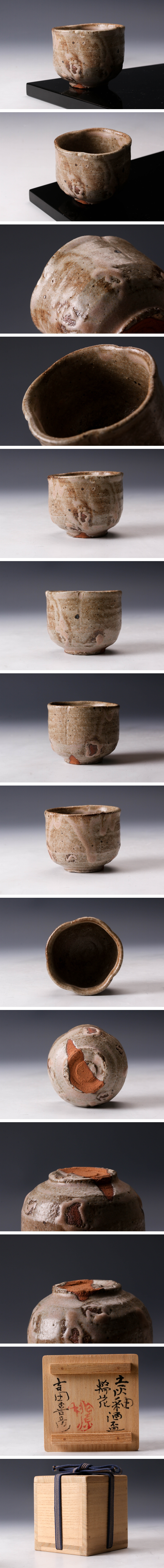 【佳香】吉田喜彦 土灰釉輪花酒盃 共箱 本物保証