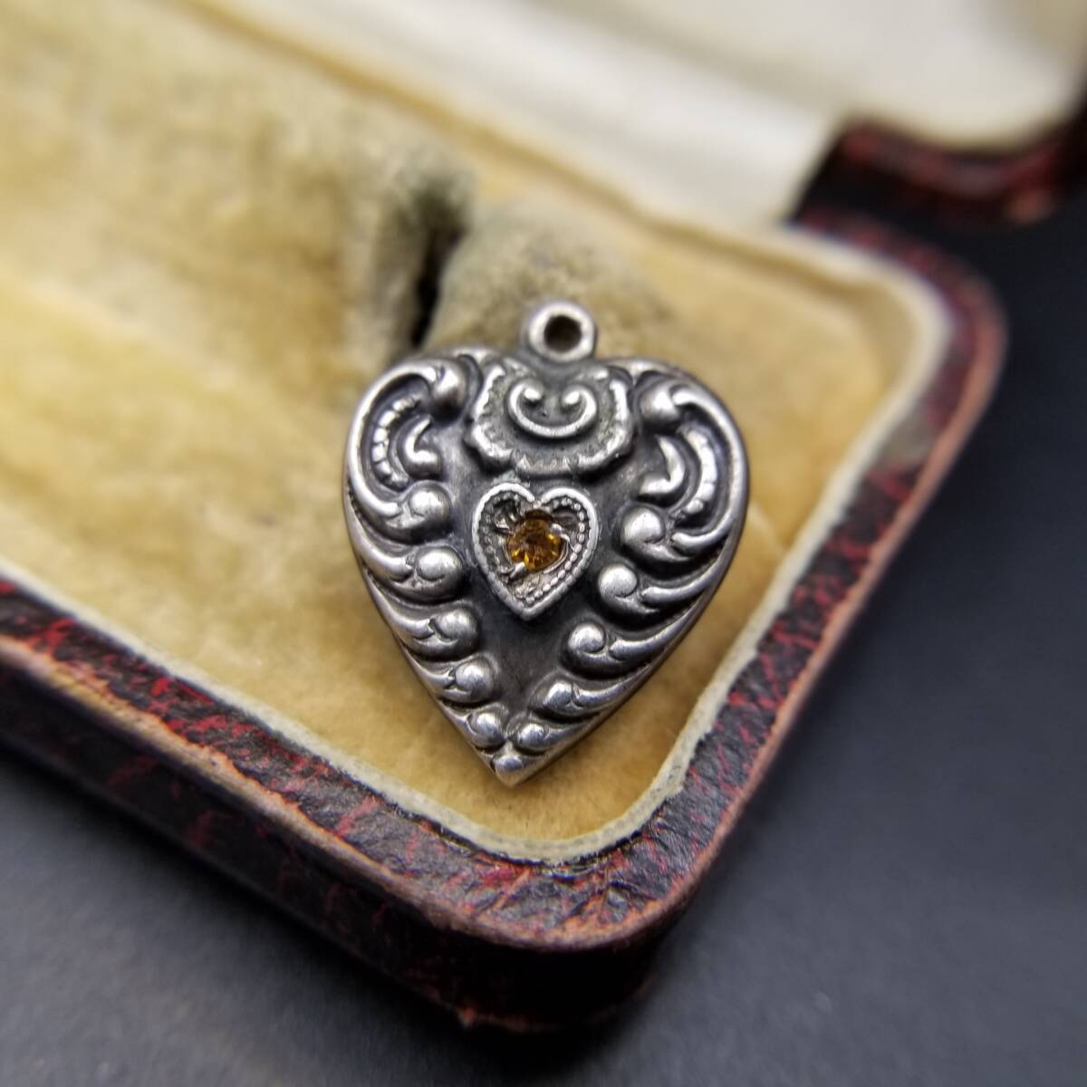 > WWII期 ヴィンテージ スウィートハートジュエリー アールヌーヴォー 925 シルバー チャーム ペンダントヘッド 銀 ネーム彫金 Sana Y24-Y